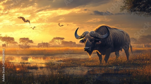 © Pure Imagination, Obraz premium Cape Buffalo at Sunset in the African Savanna