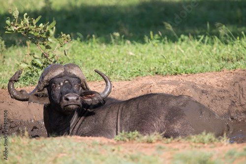 Obraz premium Cape buffalo mud play in mud to cool down protect from insects