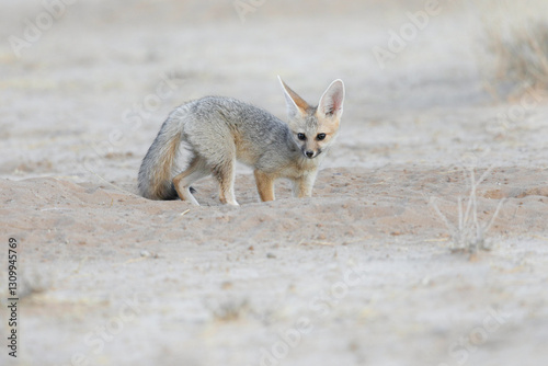 Fototapeta premium Cape fox feeling safe at its den in the dry Kalahari Desert sand
