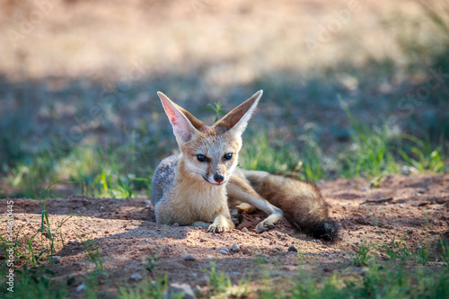 © simoneemanphoto, Obraz premium Cape fox laying in the sand.
