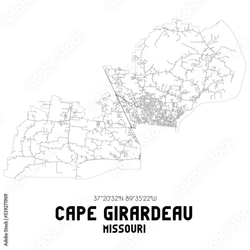 © Rezona, Naklejka premium Cape Girardeau Missouri. US street map with black and white lines.