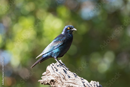 © lesniewski, Naklejka premium Cape glossy starling (Lamprotornis nitens) on a branch in Namibia