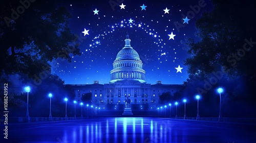 © idealxone, Obraz premium Capitol Building Under Starry Sky