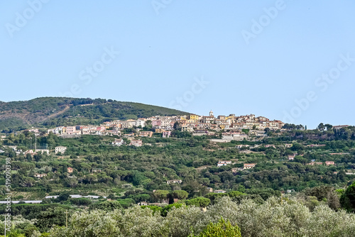© bill_17, Fototapeta premium Capoliveri, Elba, Insel, Altstadt, Bergdorf, Kirche, Santa Maria, Assunta, Häuser, Landwirtschaft, Weinberge, Sommer, Toskana, Toskanischer Archipel, Italien