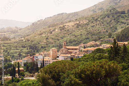 Fototapeta premium Capoliveri has unusual architecture, the town still retains its medieval appearance, with its narrow, picturesque vineyards and arcades known as chiassi. Island of Elba, Italy