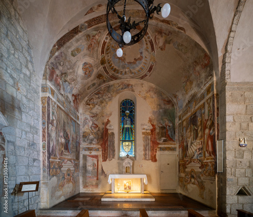 © Paolo, Obraz premium Cappella Madonna della Pieve, Abbazia di San Salvatore, romanesque styled medieval church in Tuscany, Italy
