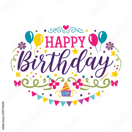 © MdJahid, Obraz premium Cappy birthday card with a floral Colorful floral birthday greeting Birthday card with flowers