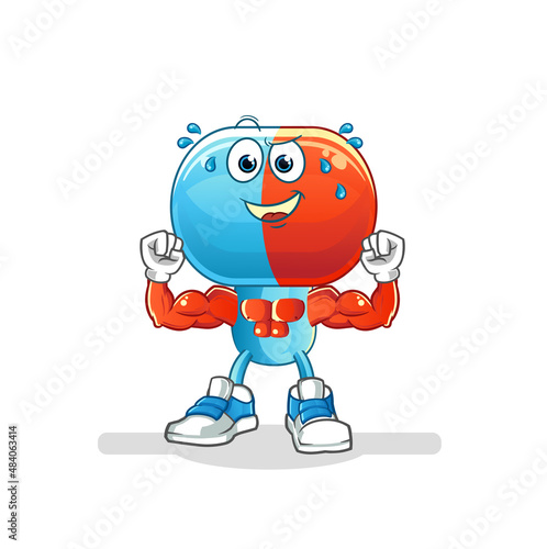 Fototapeta premium capsule head cartoon muscular. cartoon mascot vector