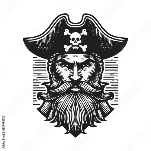 © JimzStd, Fototapeta premium captain pirate Engrave vector logo icon design illustration template
