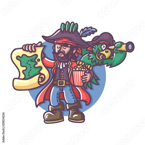Obraz premium captain pirate holding map with parrot