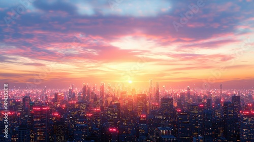 Fototapeta premium Captivate in a vibrant cityscape with dazzling red lights, embodying the...