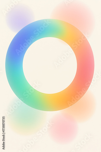 Obraz premium Captivating abstract gradient ring design featuring a smooth spectrum of vibrant, soft colors against a gentle, blurred background with delicate bokeh effects