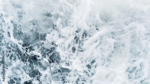 Naklejka premium Captivating aerial shot of chaotic sea foam patterns, showcasing the intense power of the ocean during a tumultuous swell, perfect for dynamic backgrounds or nature-themed designs