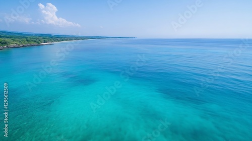 © Generative AI, Obraz premium Captivating Aerial View Of Calm Pristine Ocean Waves Meeting The Coastline On A Sunny Day : Generative AI