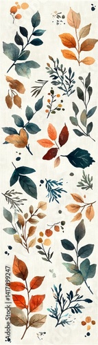 Fototapeta premium Captivating autumn leaves illustration nature art print serene vertical view botanical aesthetic for home decor
