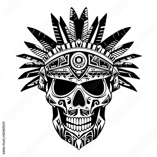 © Ilia, Obraz premium Captivating Aztec Skull Symbol Vector - Ideal for Bold Tattoos, Striking Graphic Designs, and Cultural Art Projects