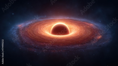Fototapeta premium Captivating Black Hole Surrounded by Glowing Accretion Disk in Deep Space...