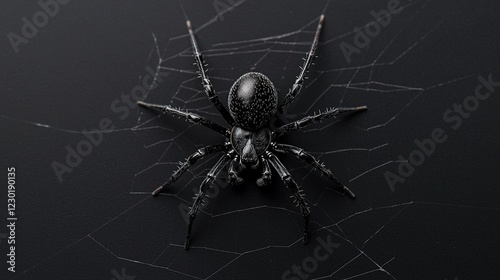 © Chantana, Obraz premium Captivating black spider captured in web indoor setting macro photography artistic perspective wildlife exploration