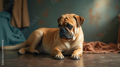 © IsabellaNoviDwita, Fototapeta premium Captivating canine portrait showcasing a fawn-colored bulldog's expressive gaze