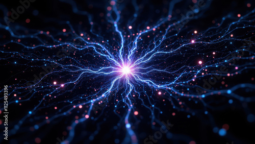Naklejka premium Captivating celestial display with vibrant blue and purple hues resembling cosmic activity within a nebula, featuring RAG, Retrieval Augmented Generation.