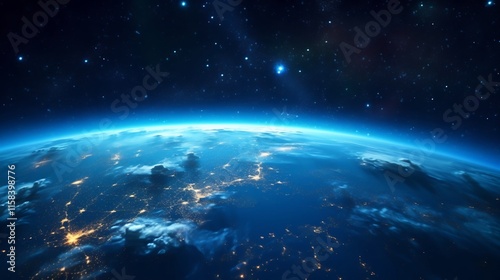 Obraz premium Captivating Celestial Landscape Earth Enveloped by the Glowing Majesty of the...