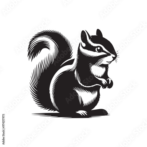 © Vectorhub, Obraz premium Captivating chipmunk silhouette for versatile design applications - Chipmunk black vector