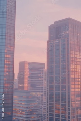 © Media Srock, Obraz premium Captivating Cityscape Ablaze in the Soft Glow of Dusk