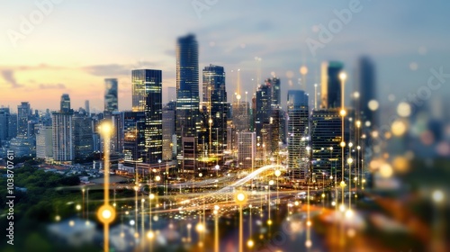 © nengredeye, Fototapeta premium Captivating Cityscape with Cultural Elements at Dusk