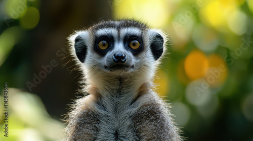 © Gun, Fototapeta premium Captivating Close-Up of a Curious Lemur with Striking Eyes and Furry Texture