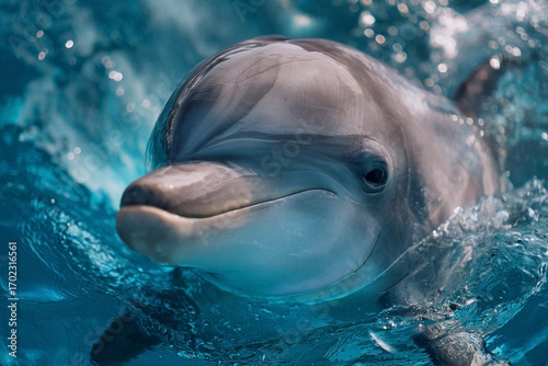 © Mira, Fototapeta premium Captivating close-up of a dolphin swimming in crystal-clear turquoise waters