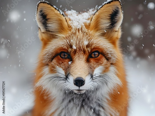 © Thares2020, Fototapeta premium Captivating Close up of a Fox with Bright Eyes Against a Snowy Background