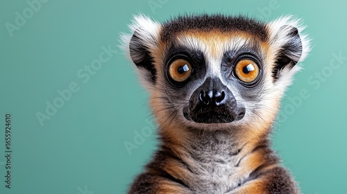 Fototapeta premium Captivating Close-Up of a Lemur with Striking Eyes Against a Soft Green Background