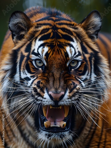 Obraz premium Captivating Close up Portrait of a Ferocious Tiger s Snarling Face Showcasing...