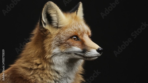 © Anisah, Fototapeta premium Captivating Close-Up Portrait of a Red Fox Against a Dark Background, Showcasing Its Distinctive Features, Fur Texture, and Intense Gaze