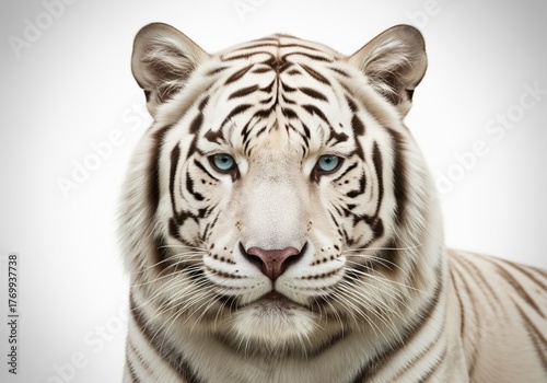 Fototapeta premium Captivating close up portrait of a white tiger with intense azure blue eyes
