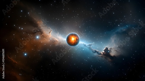 © Srinard, Fototapeta premium Captivating close up view of a luminous cosmic orb with intense swirling energy patterns surrounding it glowing vibrantly within a colorful nebula creating a striking and mesmerizing space scene