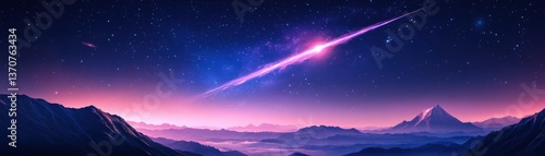 © Naphatson, Fototapeta premium Captivating Cosmic Landscape with Distant Galaxy and Mountainous Horizon