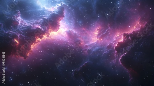 © ChrisTYCat, Naklejka premium Captivating Cosmic Spectacle Bright Stars Nebulae and Distant Galaxies in a Dark Space Background