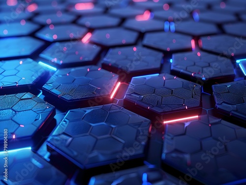 Obraz premium Captivating 3D Hexagonal Pattern with Glowing Blue Lights - Abstract Digital...