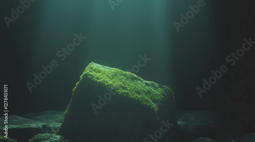 Naklejka premium Captivating dark green moss on light wet rock in a mystical forest setting