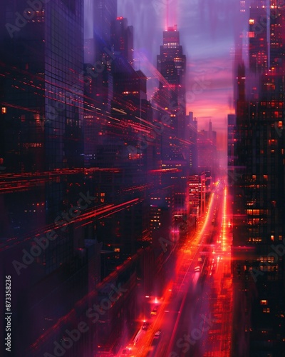 Fototapeta premium Captivating digital art showcasing a modern cityscape illuminated by a...