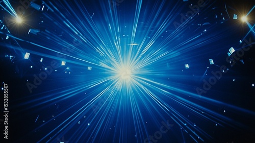 © alexsa, Naklejka premium Captivating display of bright blue light beams emanating from a central burst