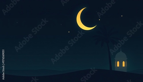 © Rahmat , Naklejka premium captivating display of hanging lanterns against a dark, moody backdrop. The lanterns are intricately designed with ornate patterns, creating a warm, golden glow. Ramadan background