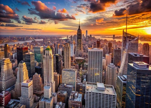 © Phatsawut, Obraz premium Captivating Dusk Skyline: Aerial View of New York City from The Edge