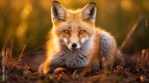 Fototapeta premium Captivating Fox Portrait at Sunset. Generative AI