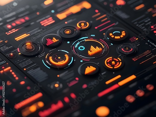 © Bos Amico, Obraz premium Captivating futuristic data visualization with intricate HUD graphics and advanced game development GUI