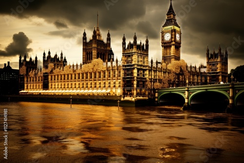 © pueb, Naklejka premium Captivating golden monument a textured representation of iconic architecture in stunning detail