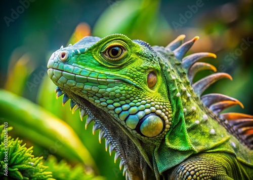 © Man888, Fototapeta premium Captivating Green Iguana in Natural Habitat - Explore the Beauty of Iguana Grande Verde in Lush Environments
