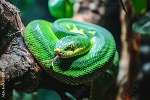 © Nico, Fototapeta premium Captivating Green Snake on a Branch