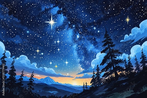 © Michael, Fototapeta premium Captivating Hand-Drawn Night Sky Illustration with Stars and Serenity